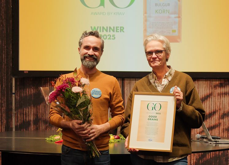 – Vi är stolta och glada över att vinna KRAVs Go Organic Award! Med Bulgur av korn vill vi skapa god, enkel och näringsrik vardagsmat. Vår hydrotermiska behandling gör att kroppen lättare kan ta upp viktiga mineraler som järn och zink, vilket kan bidra till att minska järnbrist och stärka hälsan. Även planetens välmående är viktigt för oss – därför är KRAV-märkningen en självklarhet, säger David Fredlund, vd på Good Grains.